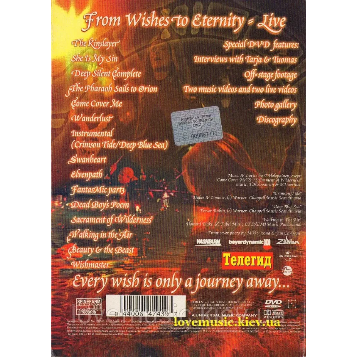 Концерт «From wishes to eternity. Live» гурту «NIGHTWISH» стане незабутньою музичною подією, яка занурить вас у чарівний світ фінського симфо-металу. У цій виставі глядачі стають свідками захоплюючого і потужного виконання всіма улюблених хітів «NIGHTWISH». Кожен акорд і нота наповнює зал атмосферою чарівництва і фантазії, створюючи незабутні спогади. Майстерність вокалу та інструментальної гри, акомпанемент розкішних світлових та звукових ефектів роблять цей концерт «NIGHTWISH» справжнім подарунком для справжніх шанувальників жанру. Незалежно від того, чи є ви давнім шанувальником гурту чи просто знайомитеся з їхньою творчістю, відео диск «From wishes to eternity. Live» подарує вам унікальну музичну подорож, яку не можна пропустити.