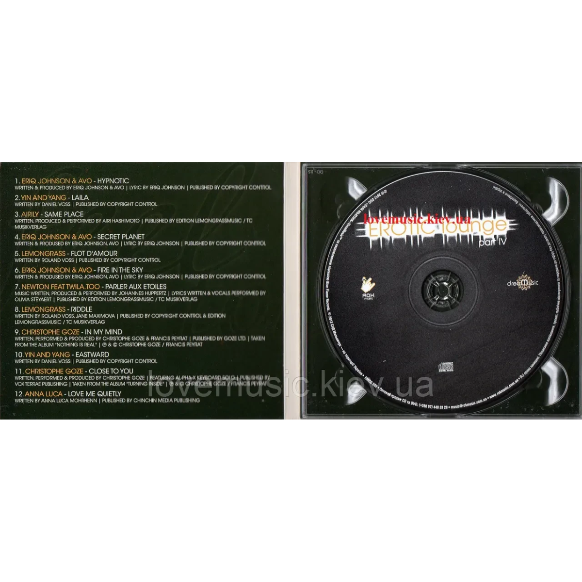 Перші дві частини збірок еротичної музики виявилися настільки вдалими і популярними, що було прийнято рішення про продовження. Не відкладаючи справу в довгий ящик були записані третій та четвертий збірники «EROTIC LOUNGE». Четвертий збірник «EROTIC LOUNGE part IV» вийшов ще гарячішим і хвилюючим, завдяки додавання східних мотивів від Yin and Yang, Airily, Christophe Goze, та треків у стилі містичних грегоріанців від Eriq Johnson & AVO та Newton. Одним словом, цей диск найкращий музичний подарунок та музичне оформлення романтичного вечора, який обов'язково перейде в перспективне нічне рандеву.