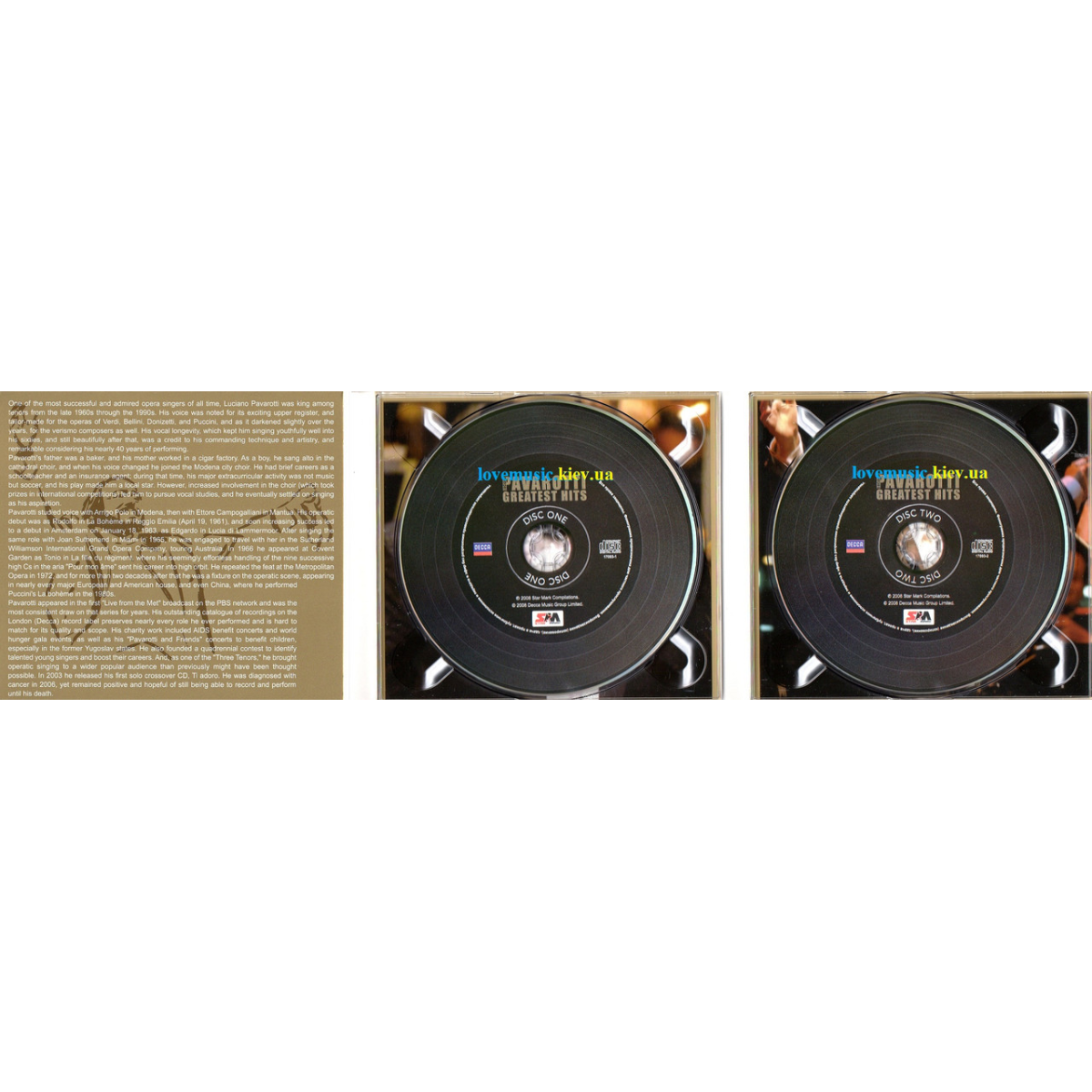 Luciano Pavarotti, італійський оперний співак (ліричний тенор), один з найвидатніших оперних співаків 20 століття увійшов до світової культури після виконання «Nessun Dorma!» на церемонії відкриття кубка світу FIFA у 1990 році в Італії. Завдяки своїй вокальній майстерності, характерній легкості співу, яке поєднується з високою індивідуальністю, і яке випромінює тепло та життєрадісність, Luciano Pavarotti став «суперзіркою» №1 оперної сцени. За 40 років ексклюзивної співпраці Паваротті з фірмою «Decca» було продано понад 100 мільйонів носіїв із записами артиста. У збірці на двох дисках «Luciano Pavarotti Greatest hits» представлена неперевершена колекція пісень, арій та дуетів з друзями – Андреа Бочеллі та Френком Сінатрою.