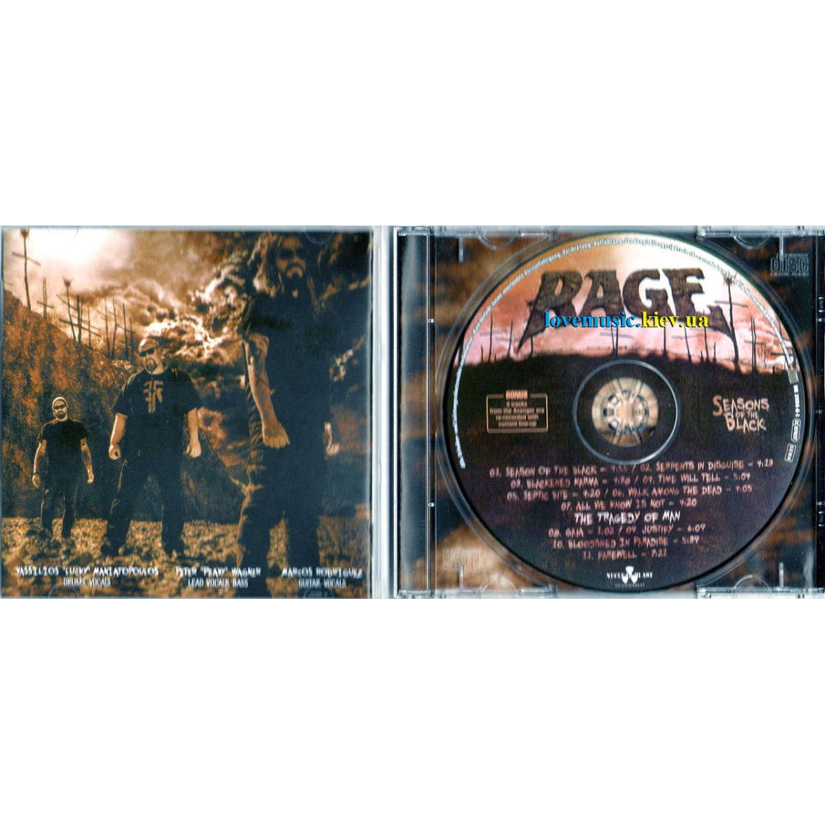 Німецька Heavy Metal, Power Metal група «RAGE» понад 30 років залишається одним із провідних колективів цього музичного стилю. У їхньому новому альбомі «Seasons of the black» переплелися три різних жанри металу, що робить альбом більш різноманітним, а грубий вокал постійного фронтмена Пітера Вагнера чітко вписується у виконувані композиції, втім, як завжди.