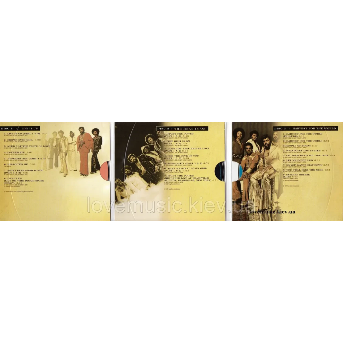 Тим кому до смаку музика «THE DOODIE BROTHERS», «THE NEVILLE BROTHERS», «EARTH, WIND & FIRE», рекомендуємо не дуже відомих у нас «THE ISLEY BROTHERS». Видання зроблено у вигляді softpack і містить три альбоми «Live It Up» 1974 року, «The Heat Is On» 1975 року і «Harvest For The World» 1976 року.