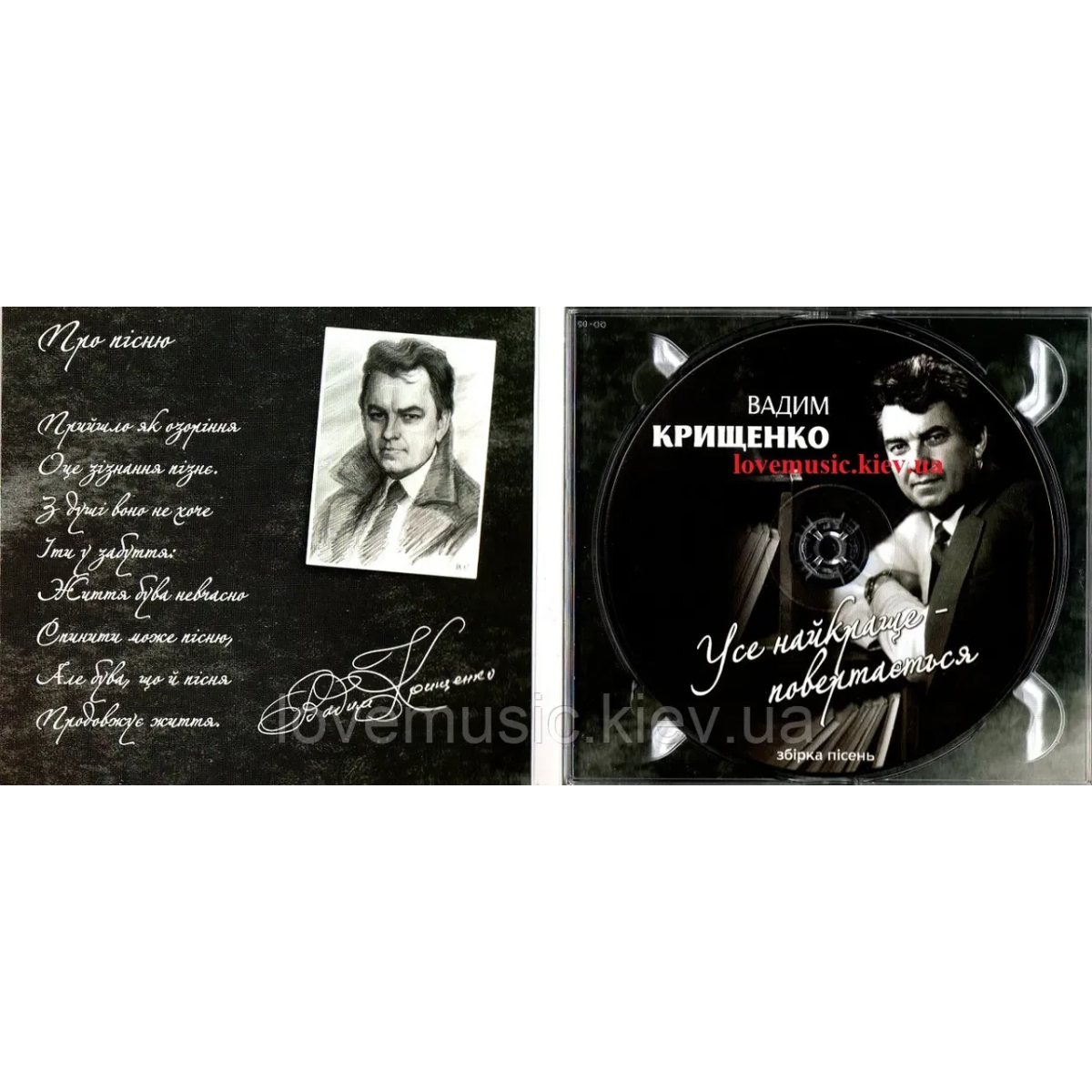 20 найвідоміших пісень Вадима Крищенка представлені у збірці на диску «Усе найкраще повертається». Їх виконують найвідоміші співаки та співачки України – Василь Зінкевич, Оксана Білозір, Назарій Яремчук, квартет «Гетьман», Раїса Кириченко, Іво Бобул, Іван Попович та інші. Увага! Лімітоване видання за сприянням Олега Ляшка та Олександра Богачова.