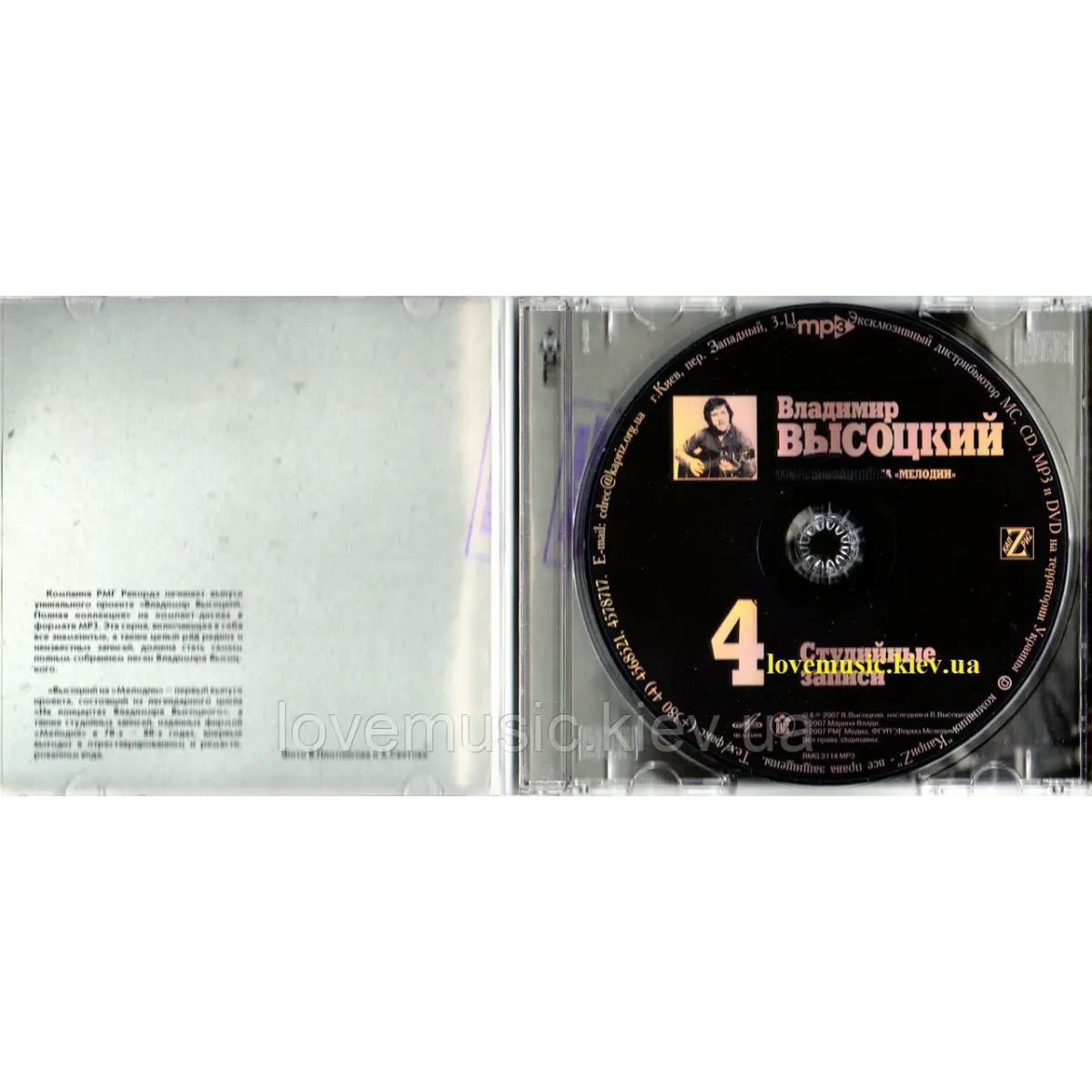 До вашої уваги видання унікального колекційного проекту «Владимир Высоцкий. Полная коллекция» на компакт-дисках у форматі mp3. Видання містить не тільки широко відомі пісні, а й велику кількість рідкісних та втрачених записів, які на всі 100% стануть найповнішою антологією пісень Володимира Висоцького. Чотири диски «Владимир Высоцкий на «Мелодии» складаються із добре відомої серії записів «На концертах Владимира Высоцкого» (перших три), а також студійних записів (четвертий диск) з ремастованим звучанням, що видавалися радянською фірмою грамзапису «Мелодія» в 70-х і 80-х роках.
