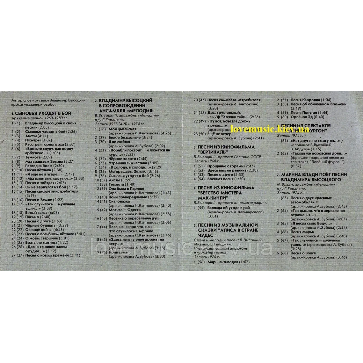 5. ПЕСНИ ИЗ МУЗЫКАЛЬНОЙ СКАЗКИ «Алиса в стране чудес». Слова и мелодии песен — В. Высоцкий. Музыка — Е. Геворгян. Инструментальный ансамбль п / у М. Нерсесяна. Запись 1976 г.
