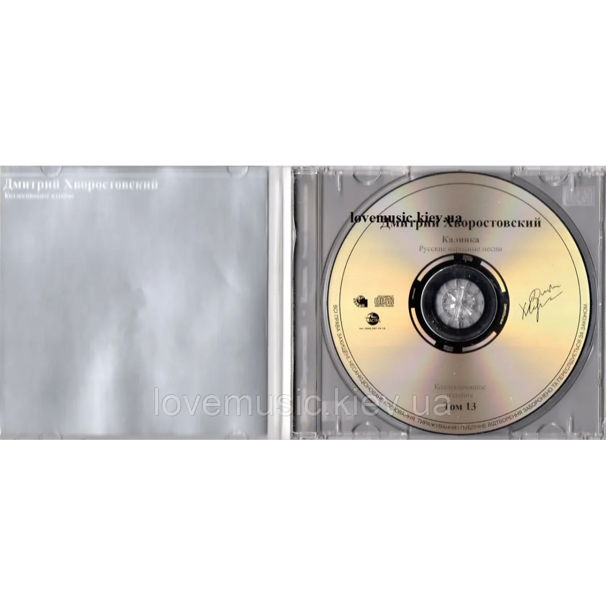 Дмитро Хворостовський, один з найвідоміших і шанованих оперних баритонів сучасності, представив диск «Калинка. Русские народные песни Том. 13». Цю збірку можна назвати справжньою перлиною для всіх поціновувачів народної музики та творчості Хворостовського. У цьому альбомі Дмитро Хворостовський виконує найулюбленіші і впізнавані народні пісні Росії, такі як «Калинка», «Что не белая береза», «Я встретил Вас» і інші. Його неповторний голос в поєднанні з яскравими і емоційними аранжуваннями створює неповторну атмосферу, яка переносить слухачів в світ народної мудрості і краси. Це справжня музична подорож, наповнена глибокими емоціями та щирістю. Альбом «Калинка. Русские народные песни Том. 13» – це не тільки данина російським музичним традиціям, а й унікальна можливість насолодитися величчю і талантом великого майстра вокального мистецтва. Ця збірка обов'язково стане прикрасою колекції будь-якого меломана і подарує незабутні хвилини насолоди пишністю російської народної музики у виконанні Дмитра Хворостовського.