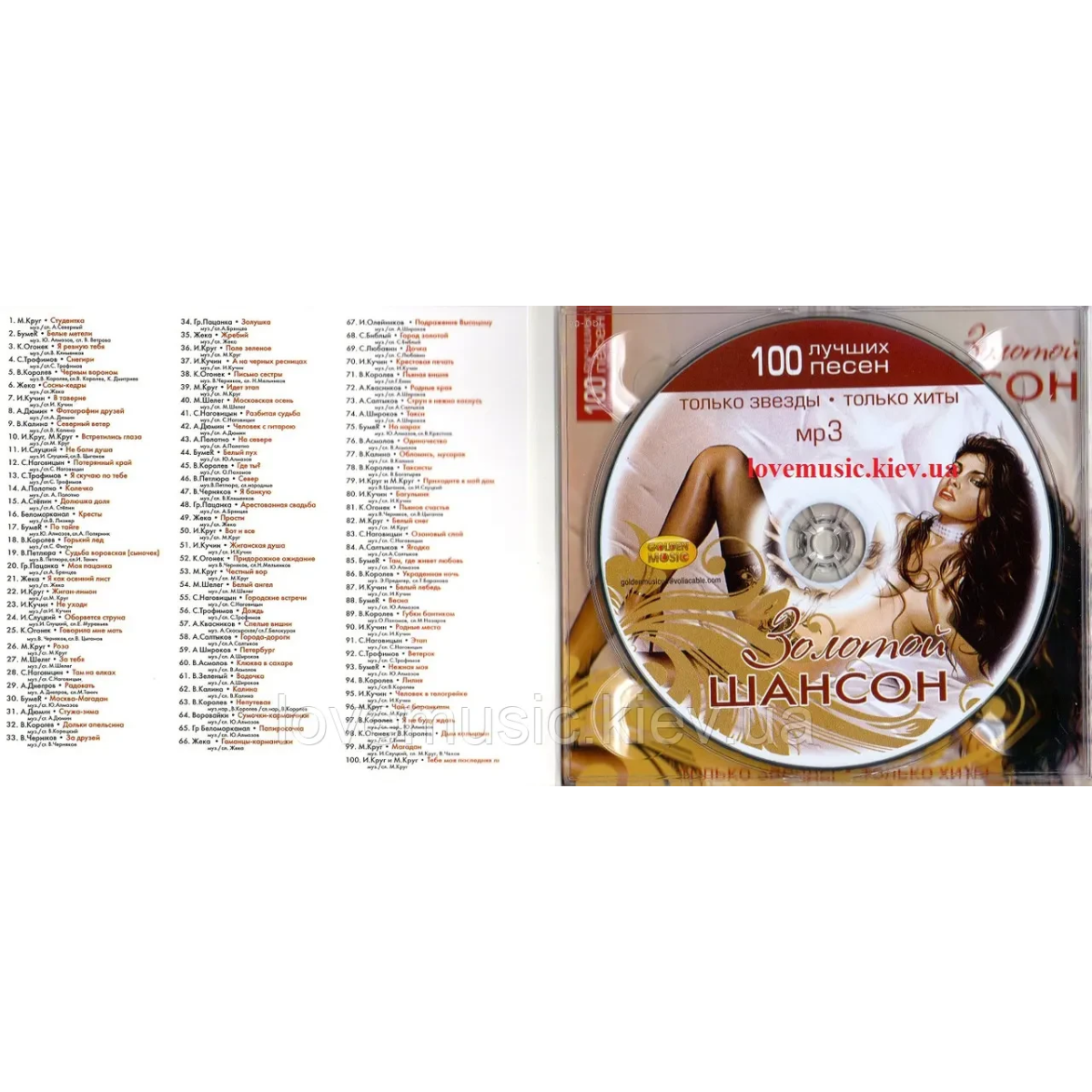 Диск може мати іншу назву «ЗОЛОТОЙ ШАНСОН 100 Пудовый хит». Дивиться фото, пісні тіж самі.