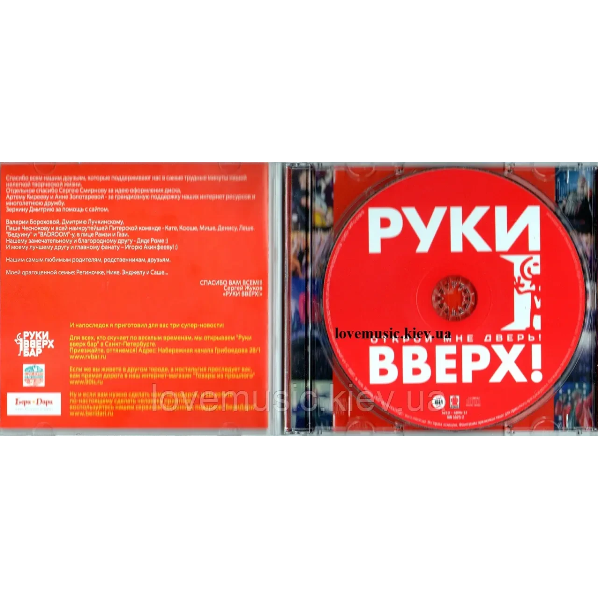 До вашої уваги новий диск «Открой мне дверь» гурту «РУКИ ВВЕРХ», популярність якого зашкалювала у 90-ті. Не було жодної дискотеки чи клубу, де б не звучали пісні «РУКИ ВВЕРХ». 14 пісень нового альбому «Открой мне дверь» знову відчиняють двері для сердець шанувальників у свій прекрасний світ чудових пісень та молодості. «Открой мне дверь» це класна музика, яка присвячується всім романтикам кінця 90-х, початку тисячних. Чотири пісні альбому з чотирнадцяті виконані дуетом з іншими виконавцями.