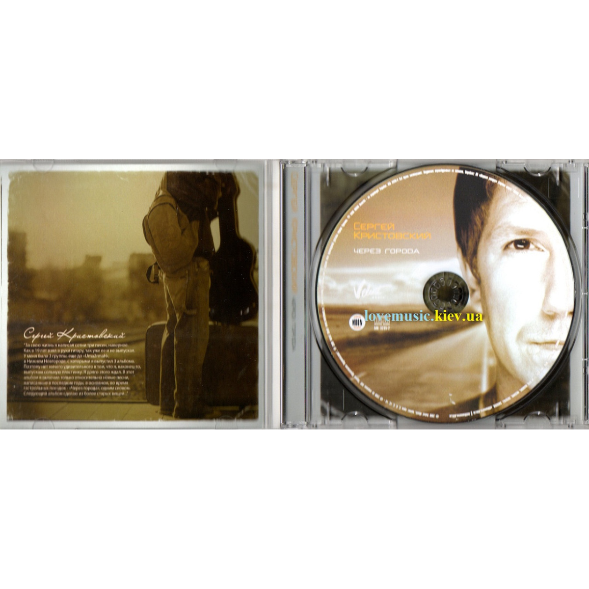 «За своє життя я написав приблизно сотні три пісень. Як у 19 років узяв до рук гітару, так її вже й не випускав. У мене було три групи, ще до «UMA2RMAН» у Нижньому Новгороді, з якими я випустив три альбоми. Тому немає нічого дивного в тому, що я нарешті випускаю сольний альбом. Я довго на це чекав. У цей альбом я включив лише відносно нові пісні, написані останніми роками, переважно під час гастрольних поїздок, тому і назва така – «Через города». Наступний альбом збираюсь зробити з старіших речей…» – каже Сергій Кристовський.