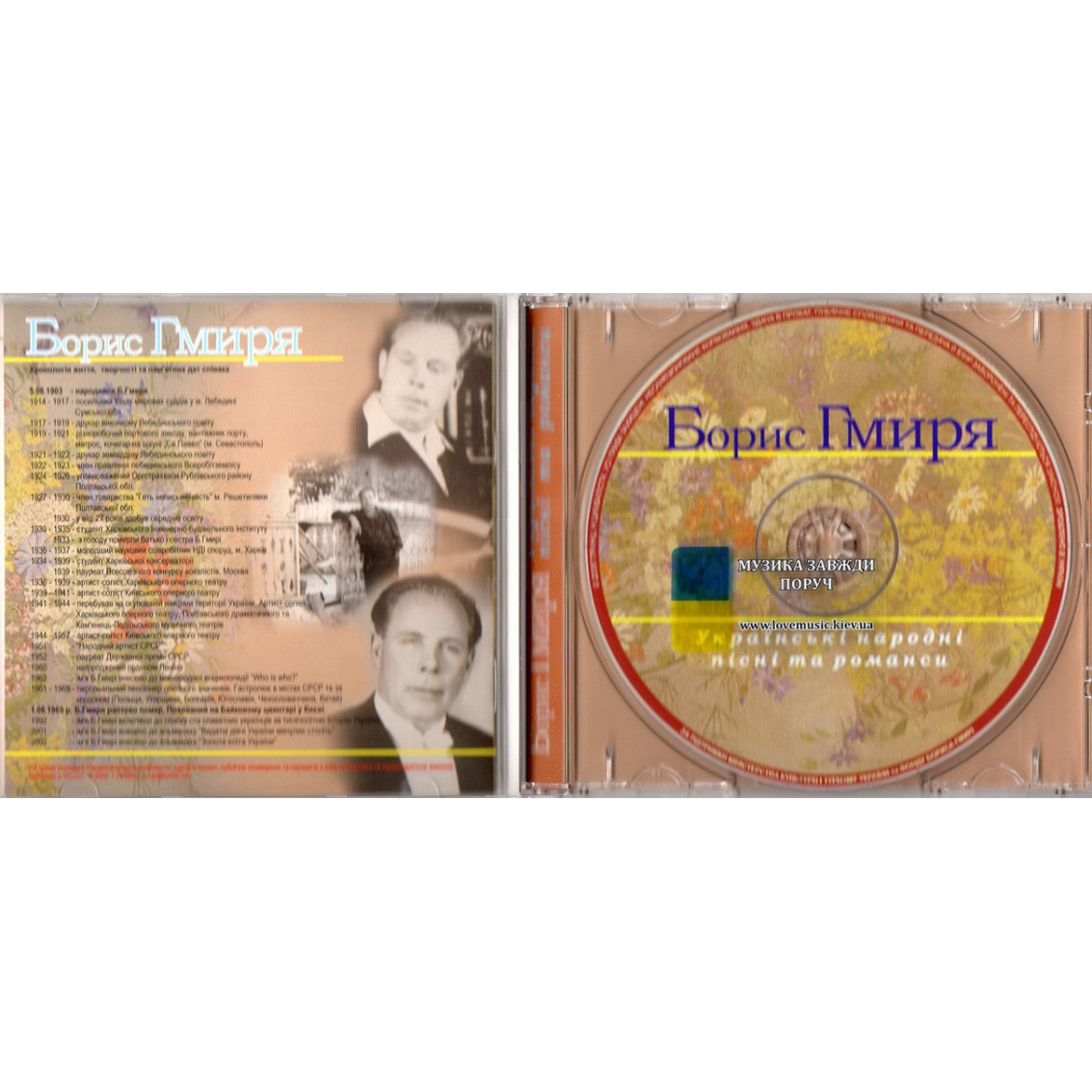 Найкращі свої виконавські здобутки, реалізовані в оперній і камерній музиці, Гмиря переніс на народнопісенний репертуар. Благородне, філігранне звуковедення, виразне фразування на «безмежному» диханні, духовна високість і чистота – всі ці риси вирізняють українську народну пісню у виконанні Бориса Романовича Гмирі. Програму диску «Українські народні пісні та романси» склали українські народні пісні і романси в супроводі Капели бандуристів України, оркестру народних інструментів та з різним супроводом. Записи, які містить диск цінні ще й тим, що серед них багато «живих», зроблених по трансляції у Києві. Буде дивно, якщо Вас не схвилює, наскільки ніжно й глибоко звучить його голос, якими відтінками він грає, як пронизує саме повітря, у якім звучить. Загальна тривалість звучання 73:21.