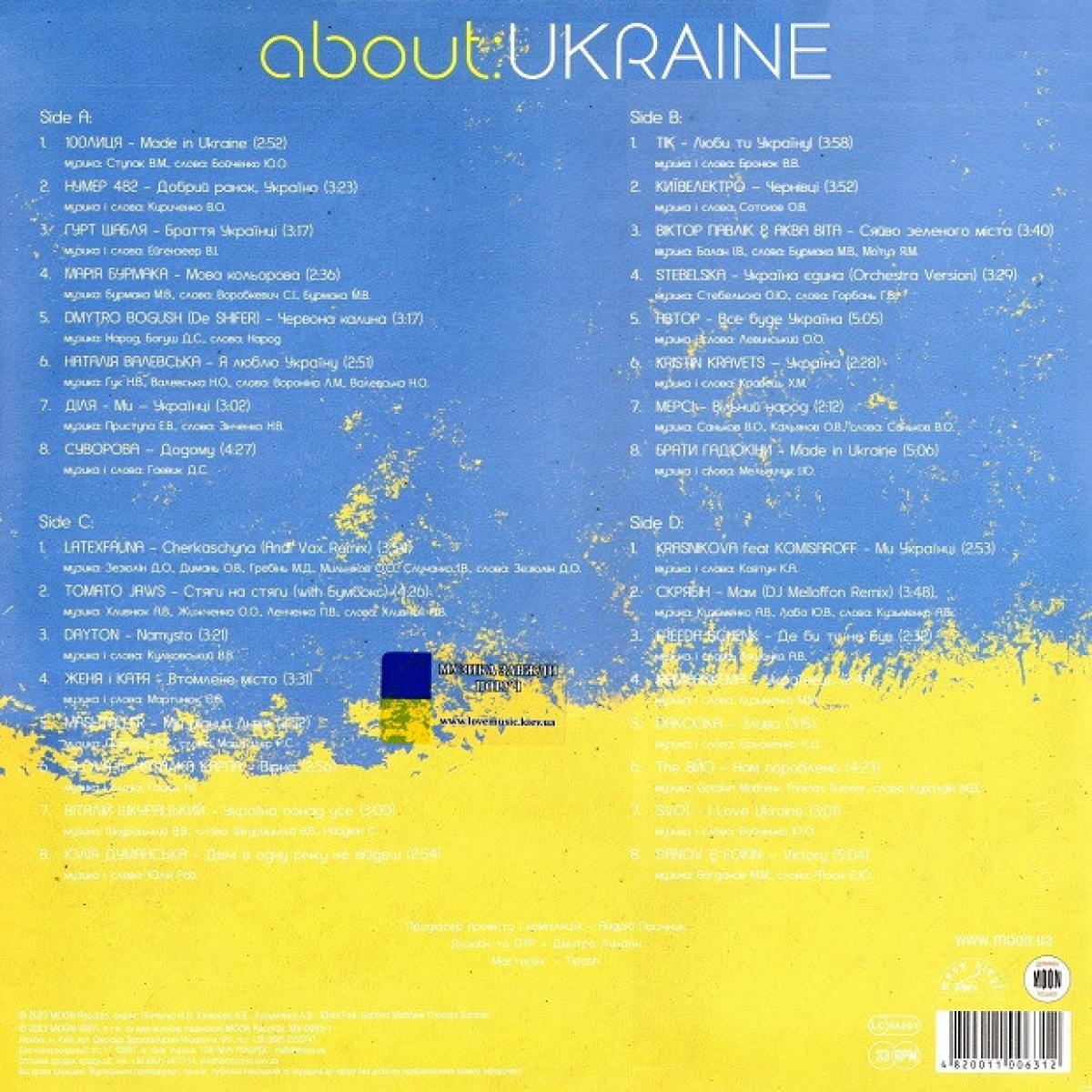 До вашої уваги нова збірка на двох вінілових платівках «About Ukraine». Пісні цієї збірки присвячені нашій улюбленій країні, для всіх тих, у кого Україна в серці. Видання містить велику кількість ексклюзивних пісень, які раніше не видавались. Усі вони поєднані любов'ю до України, до її людей, міст, природи та неперевершеної атмосфери, яку тількі справжні митці можуть так талановито і яскраво передати через свою творчість. Головна мета збірки «About Ukraine» спрямована на єднання усіх українців за допомогою пісні, щоб гідно пройти важкі часи до неминучої спільної перемоги. Цей лімітований вініл, зроблений у символічних кольорах (блакитний та жовтий), займе центральне місце у вашій музичній колекції, а ще він може стати чудовим та оригінальним подарунком для кращих друзів.