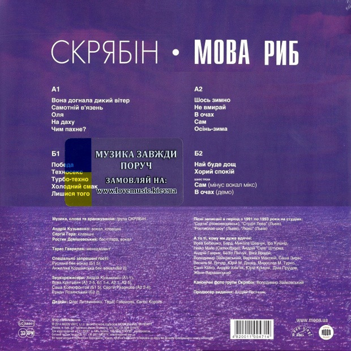 Вперше на подвійному вінілі перевидання другого альбому «Мова риб» 2024 року легендарного українського гурту «СКРЯБІН». Альбом «Мова риб» українського гурту «СКРЯБІН» у 1993 році став значною подією в сучасній історії української музики та гідним поповненням у колекції кожного меломана. Нові пісні стали потужним кроком гурту на шляху до визнання та слави. Сьогодні пісні Кузьми залишаються такими же популярними, як майже понад 30 років тому. Альбом «Мова риб» був незвичним для України того часу. Синтетичний саунд, техно-ритми, пост-панкові ударні і неоромантичні мелодії просто дивували слухачів. Делюкс видання на двох платівках містить додатково кілька раритетних версій пісень, які не входили до запису альбому на компакт-дисках. Звернить увагу. Задня обкладинка платівки має невилику помилку, а саме рік видання. Замість 2024, напечатано 2014. Запечатана, в оригінальній вакумній упаковці (SS / Still Sealed).