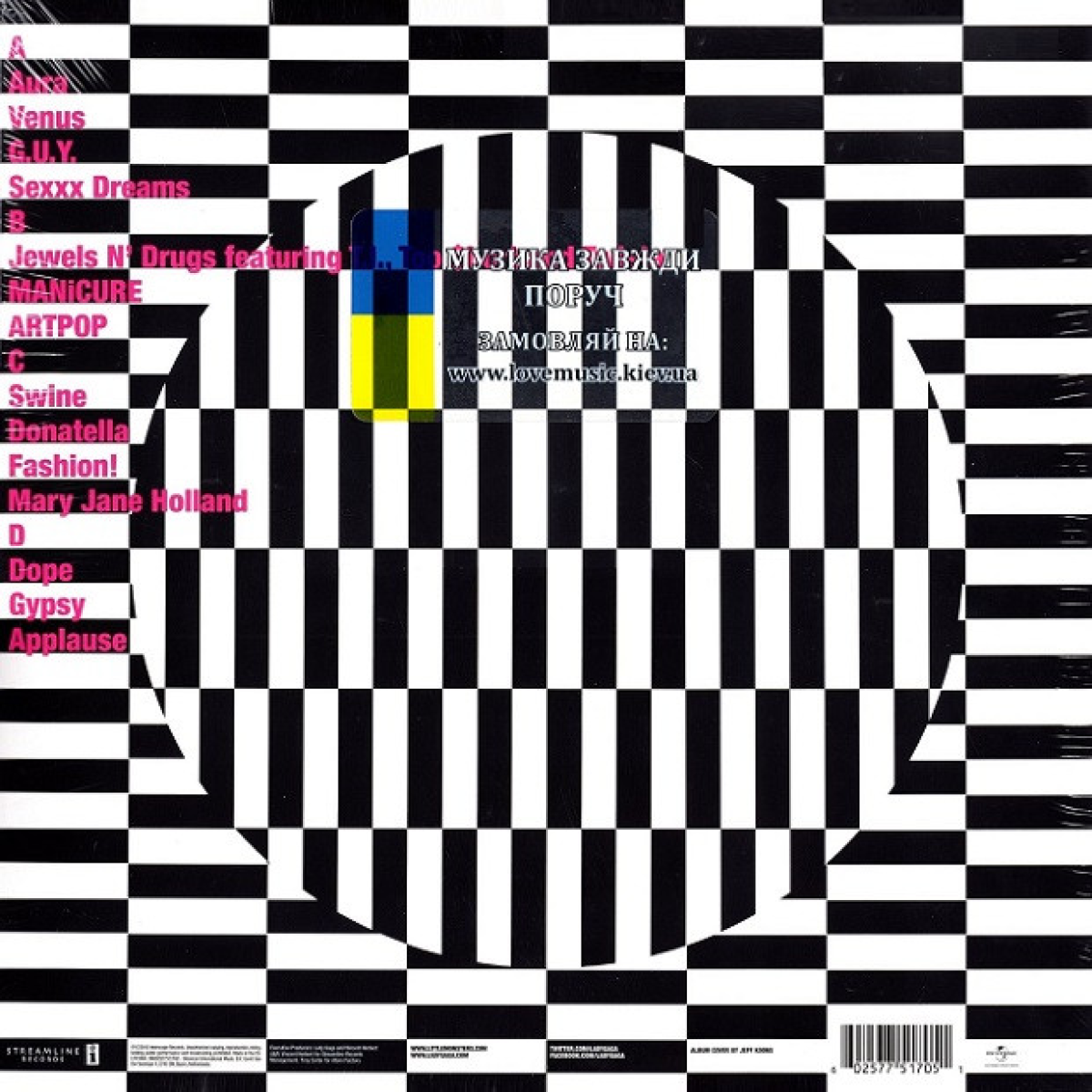 Платіва «Artpop» – це не просто музика, це маніфест, який закликає до кохання без обмежень і до мистецтва без кордонів. Lady Gaga створила платівку, яка змушує слухача відчути кожну емоцію, від ніжності до екстазу, і залишає незабутній слід у серці кожного шанувальника. Платівка запечатана в оригінальну заводську упаковку (SS / Still Sealed).